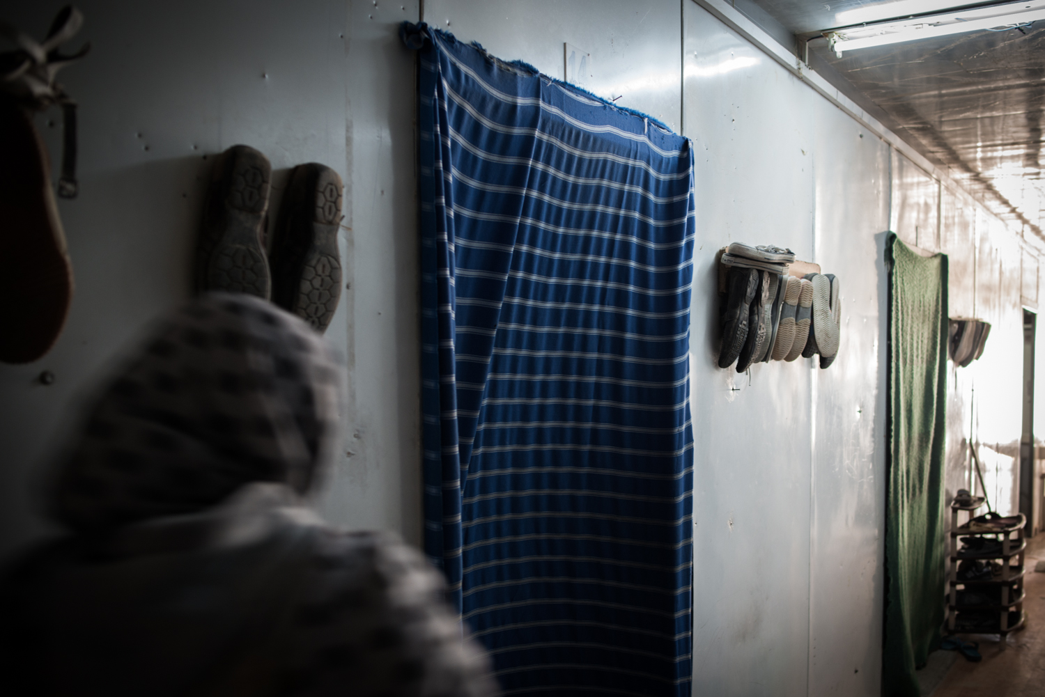 ممر بين حجرات المخيم، النساء معاناة خاصة، الشراشف كأبواب